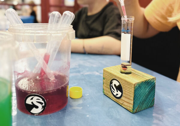 I röda korridoren dukar vi fram kemiexperiment. Måla en PH-fjäril, lär dig mer om densitet eller blanda dina egna såpbubblor!